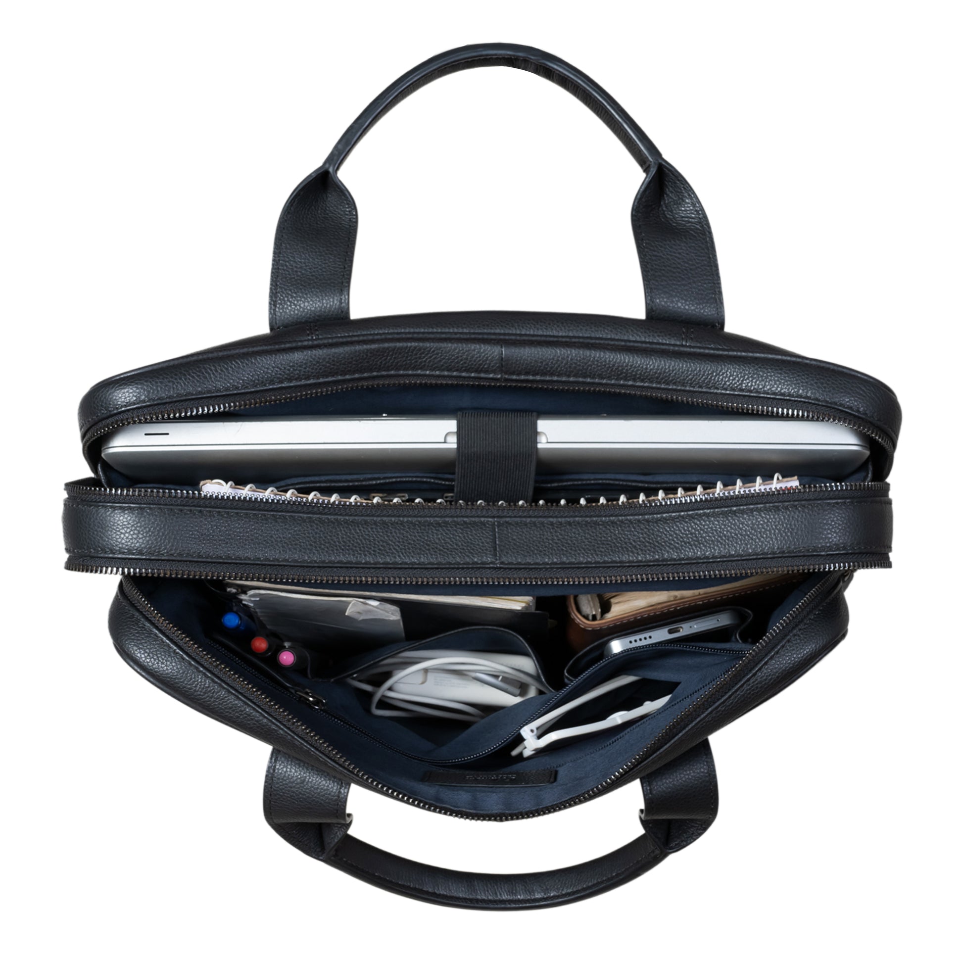 - Premium Grained Leather: Constructed from high-quality pebbled or full-grain black leather for a soft yet durable finish that is resistant to minor scuffs and holds its shape over time.