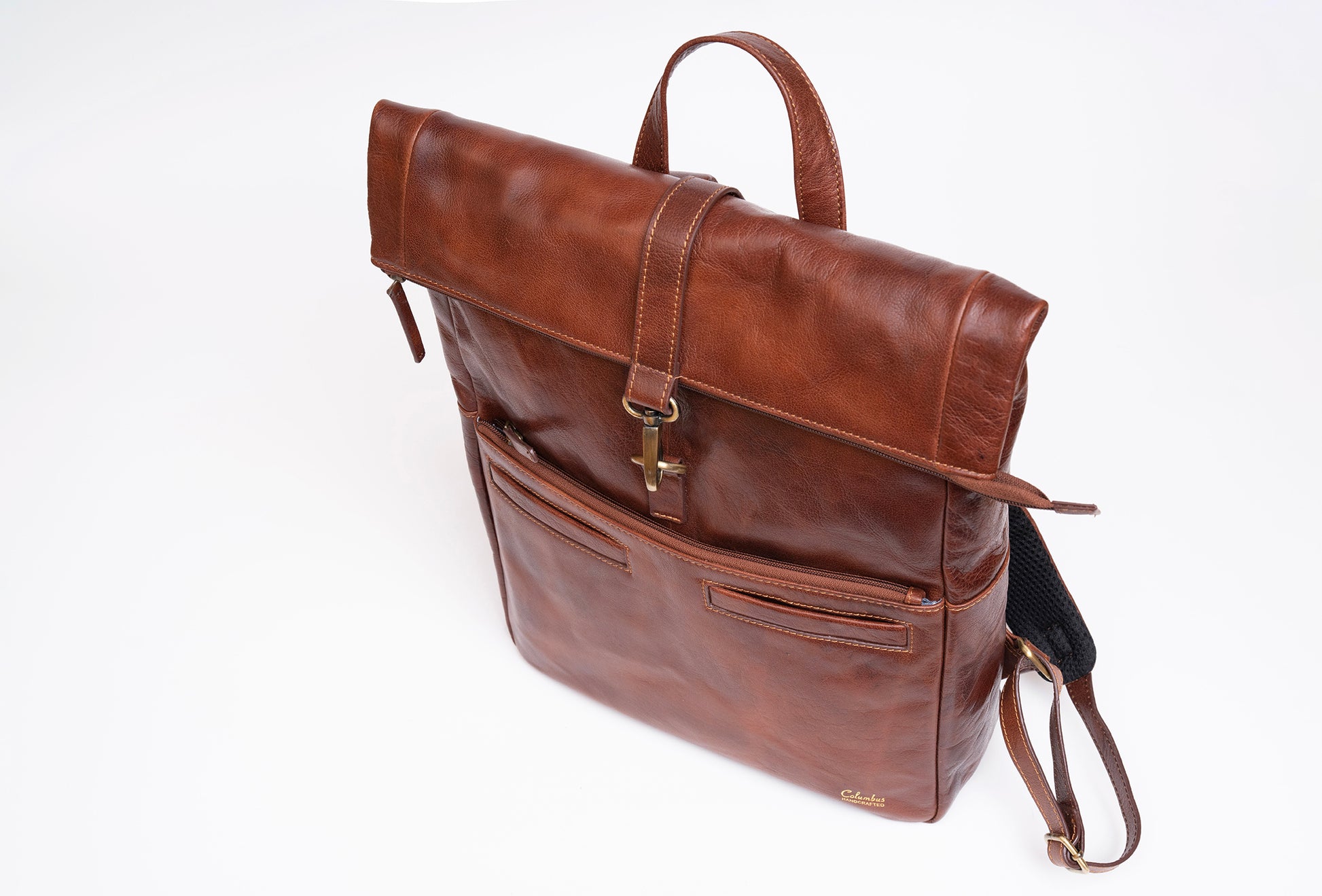 - Secure Top Fastening: The rolled top is securely fastened with a robust leather strap and hook/buckle mechanism for maximum protection and vintage style.