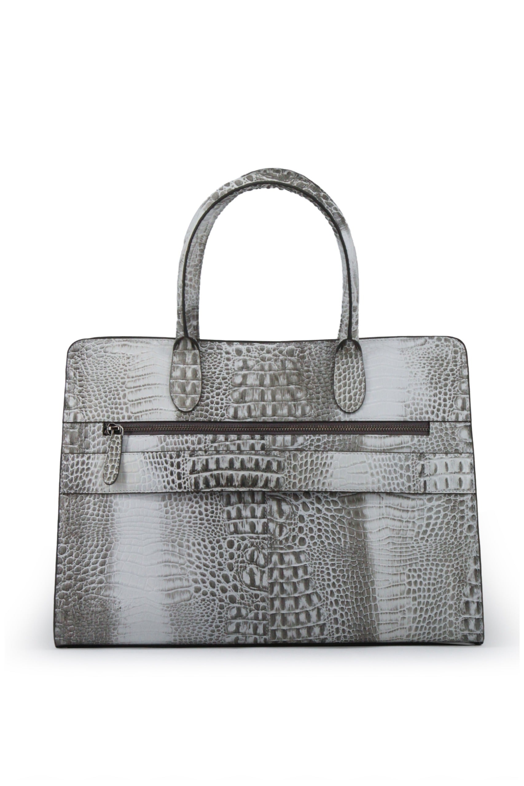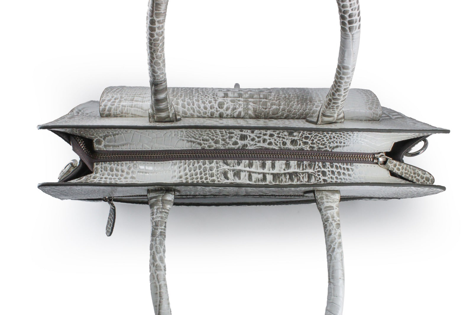 - Exotic Croc-Print: The entire bag is covered in a striking crocodile-skin print in a sophisticated two-tone colorway.